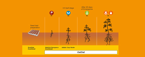 GetSet as seed treatment, soil application near the root zone, root dipping before transplanting helps the plant to inhibit the infection due to soil borne pathogens, enhances Induced Systemic Resistance (ISR) and improves root development.